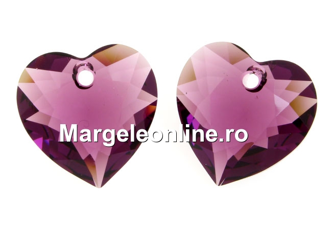 Swarovski, pandantiv inima, amethyst, 14.5mm - x1