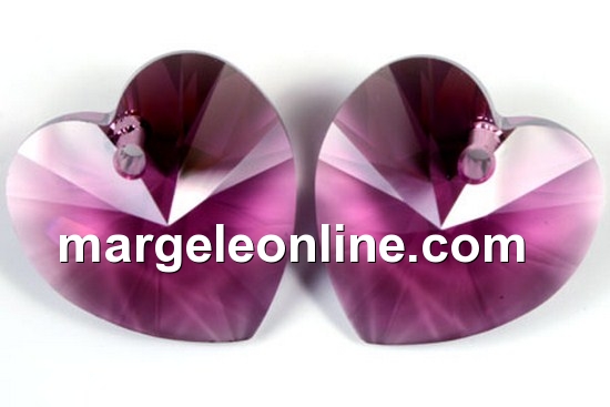 Swarovski, pandantiv inima, amethyst, 18mm - x1