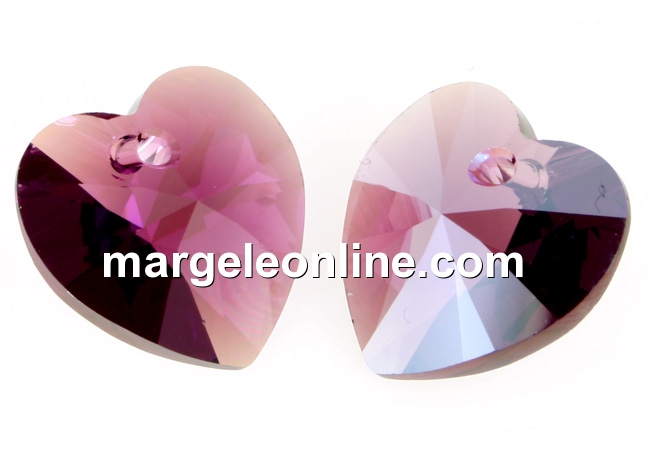 Swarovski, pandantiv inima, amethyst moonlight, 14mm - x2