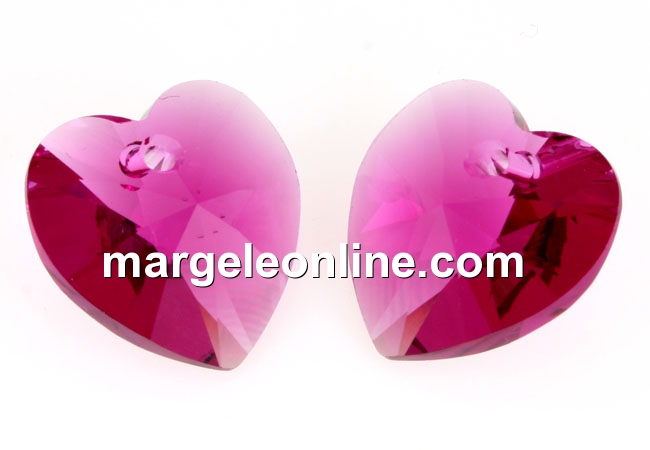 Swarovski, pandantiv inima, fuchsia, 14mm - x2