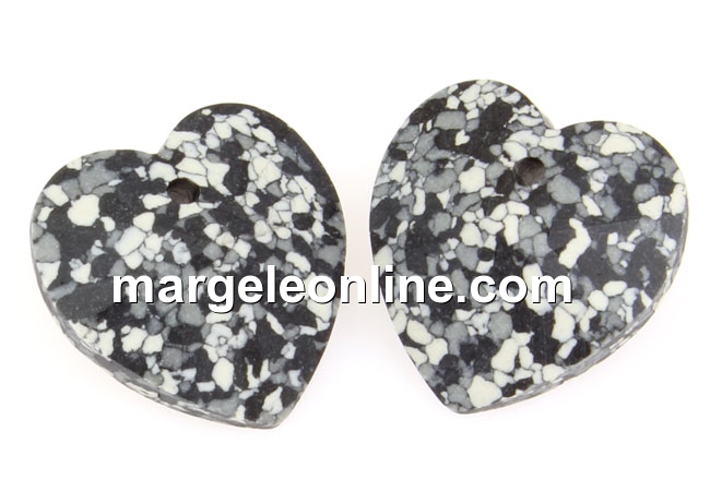 Swarovski, pandantiv inima, marbled black, 14mm - x2