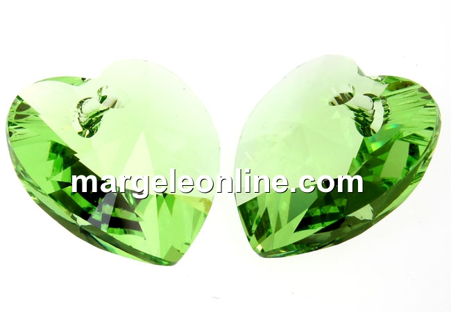 Swarovski, pandantiv inima, peridot, 14mm - x2