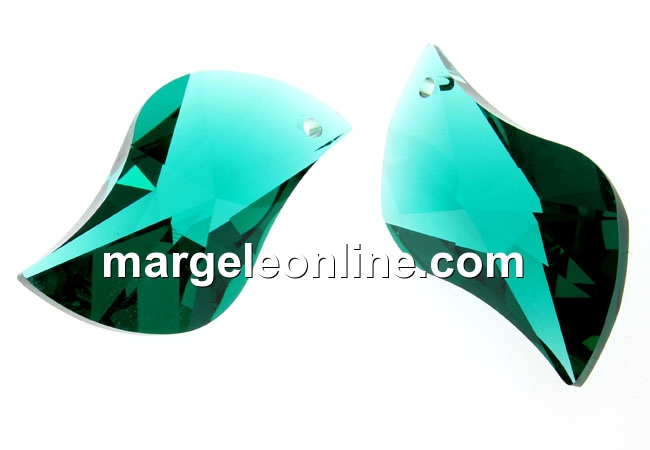 Swarovski, pandantiv wave leaf, emerald, 30mm - x1