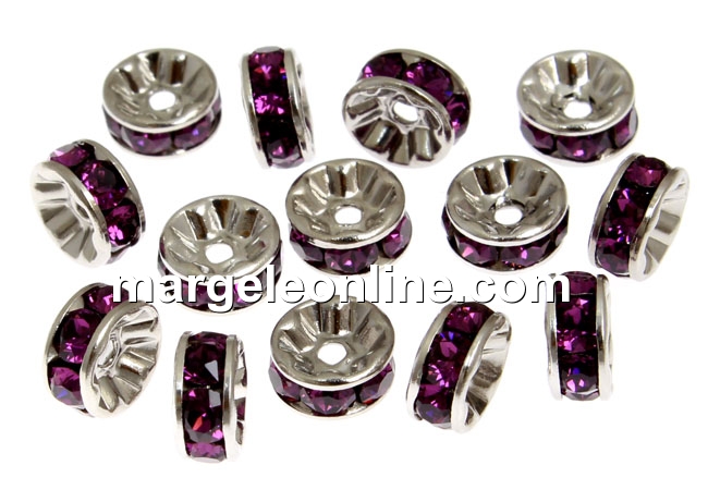 Swarovski, spacer, placat rodiu, amethyst, 6mm - x2