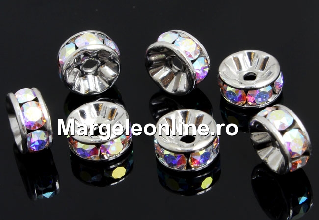 Swarovski, spacer, placat rodiu, aurore boreale, 5mm - x2