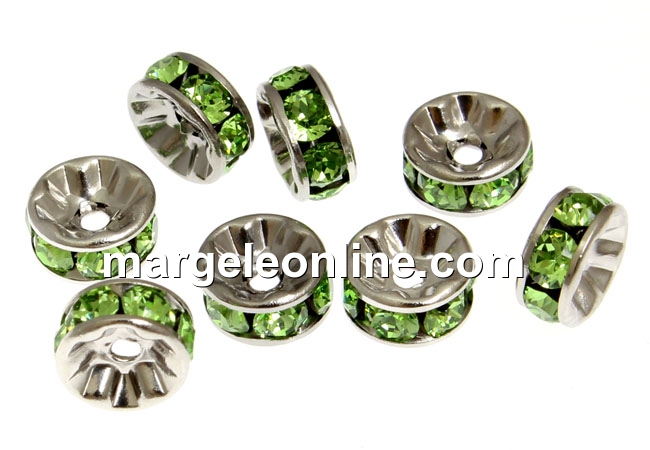 Swarovski, spacer, placat rodiu, peridot, 6mm - x2