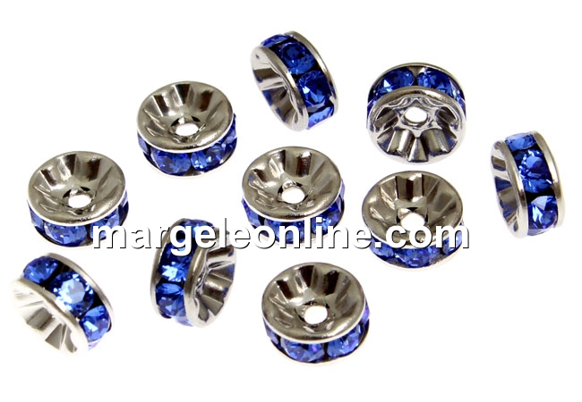 Swarovski, spacer, placat rodiu, sapphire, 6mm - x2