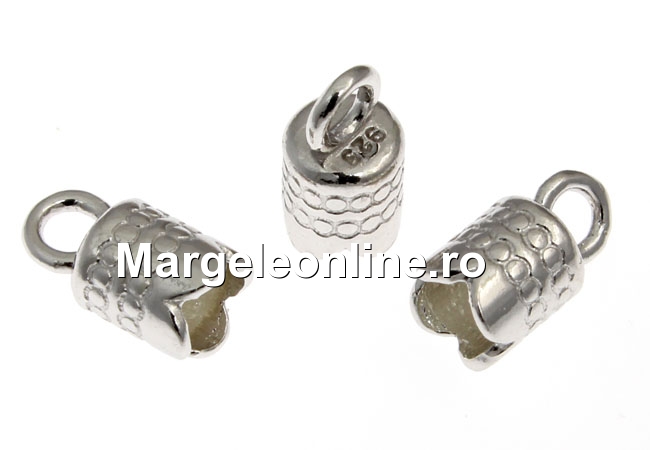 Terminatie pentru bratari si coliere , argint 925 placat cu rodiu, marcat, dimensiune: 10.5x6mm, interior 4mm. Pretul este pentru 2 bucati.