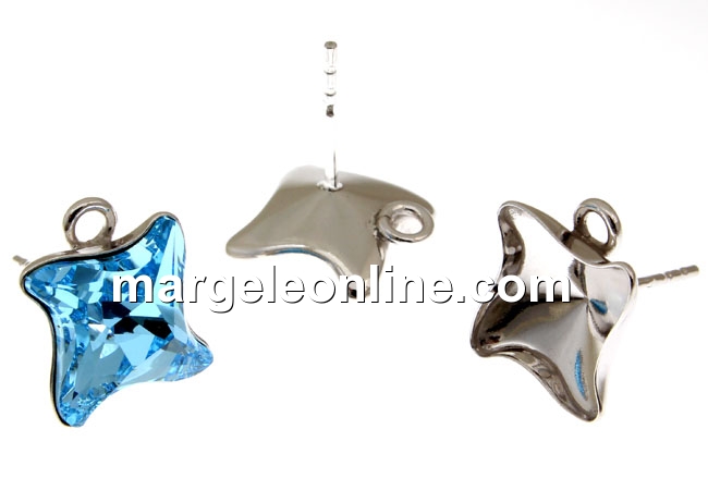 Tortite ag 925 rodiat patrat cu za pt Swarovski 4485 de 10.5mm - x1per