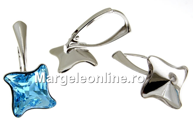 Tortite ag 925 rodiat, patrat, pt Swarovski 4485 de 10.5mm - x1per