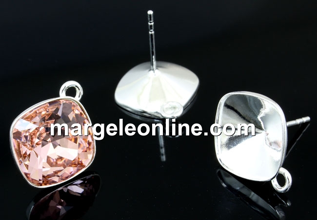 Tortite argint 925 romb cu tija si za pt Swarovski 4470 de 10mm - x1per