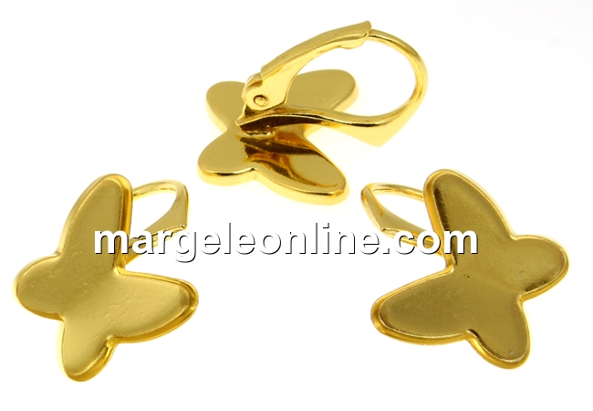 Tortite cercei sistem click, pentru cabochon fluture 12mm, accesorii bijuterii argint 925 placat cu aur, marcat, dimensiune totala: 17x12.5mm . Pretul este pentru 1 pereche.