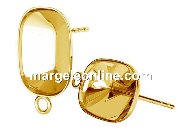 Tortite cercei cu platou pentru fancy dreptunghi 14x10mm: accesorii bijuterii argint 925 placat cu aur, marcat, dimensiune totala: 15mm. Pretul este pentru 1 pereche.