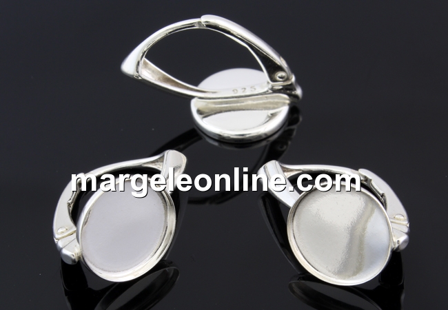 Tortite cercei sistem click, pentru cabochon 10mm, accesorii bijuterii argint 925, marcat, dimensiune totala: 19x10.5mm . Pretul este pentru 1 pereche.