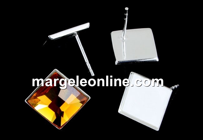Tortite cercei cu platou pentru cabochon patrat de 10mm: accesorii bijuterii argint 925, marcat, dimensiune totala: 12.5mm . Pretul este pentru 1 pereche. Produsul din imagine este cu titlu de prezentare si poate fi achizitionat din categoria Swarovski elements.