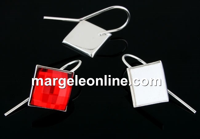 Tortite cercei cu platou pentru cabochon patrat de 10mm: accesorii bijuterii argint 925, marcat, dimensiune totala: 25x15mm . Pretul este pentru 1 pereche. Produsul din imagine este cu titlu de prezentare si poate fi achizitionat din categoria Swarovski elements.