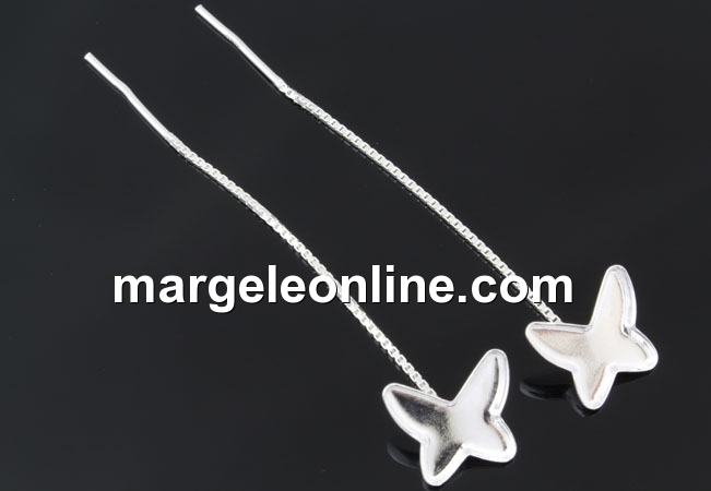 Tortite cercei cu platou pentru cabochon fluture 8mm: accesorii bijuterii argint 925, marcat, dimensiune totala: 65mm . Pretul este pentru 1 pereche.
