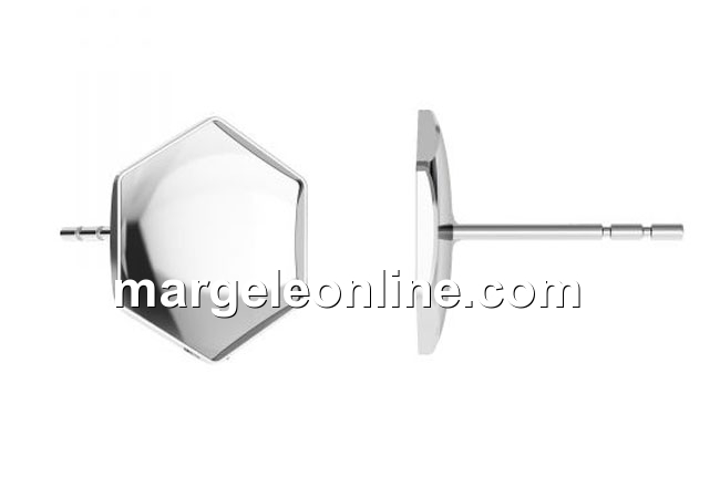 Baza cercei argint 925 pentru Swarovski hexagon 4683 de 10mm, material: argint 925 marcat, dimensiune: 13mm. Pretul se refera la 1 pereche.