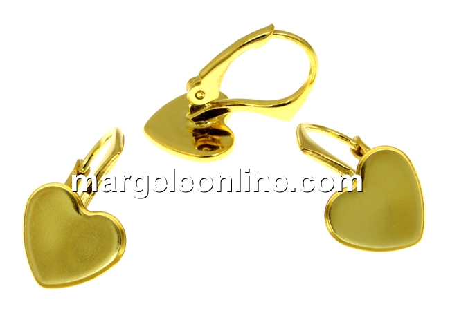 Tortite cercei argint 925 placat cu aur, marcat, cu platou pentru cabochon Swarovski 2808, inima de 10mm, dimensiune totala: 19mm . Pretul este pentru 1 pereche.