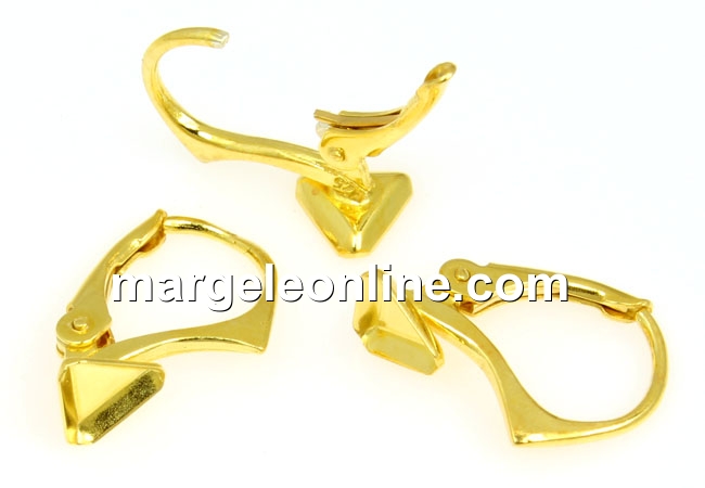 Tortite cercei cu fixare pentru cabochon cub de 6mm: accesorii bijuterii argint 925 placat cu aur, marcat, dimensiune totala: 16mm . Pretul este pentru 1 pereche.
