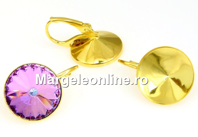 Tortite cercei cu platou pentru rivoli de 12mm: accesorii bijuterii argint 925 placat cu aur, marcat, dimensiune totala: 19.5x12.5mm . Pretul este pentru 1 pereche. Produsul din imagine este cu titlu de prezentare si poate fi achizitionat din categoria Swarovski elements.