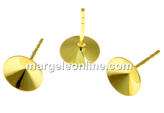 Tortite cercei cu platou pentru rivoli de 8mm: accesorii bijuterii argint 925 placat cu aur, marcat, dimensiune totala: 13mm . Pretul este pentru 1 pereche.