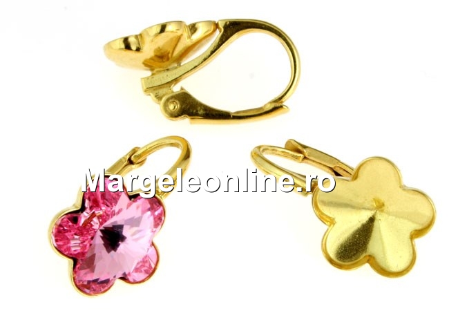 Tortite cercei argint 925 placat cu aur, rivoli floare 10mm - x1per