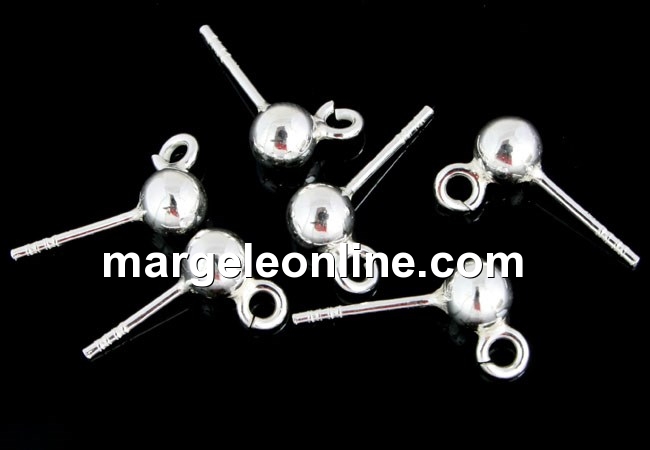 Tortite cercei cu bila 4mm, argint 925, 13mm - x1per