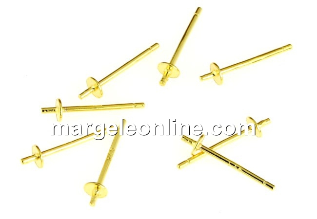 Tortite cercei cu platou de 3mm si pin pentru fixare: accesorii bijuterii argint 925 placat cu aur, dimensiune totala: 12.5mm, modelul ideal pentru margelele cu un orificiu. Pretul este pentru 1 pereche.