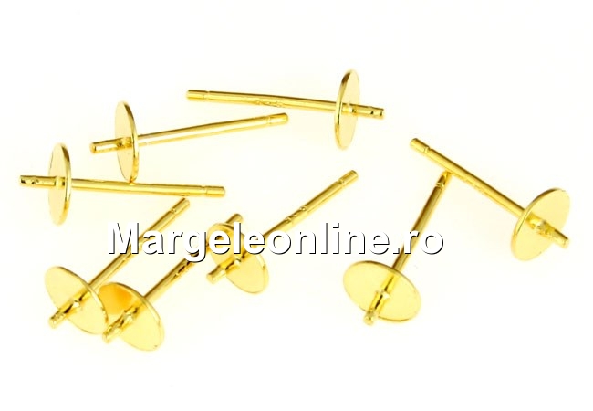 Tortite cercei cu platou de 5mm si pin pentru fixare: accesorii bijuterii argint 925 placat cu aur, dimensiune totala: 12.5mm, modelul ideal pentru margelele cu un orificiu. Pretul este pentru 1 pereche.