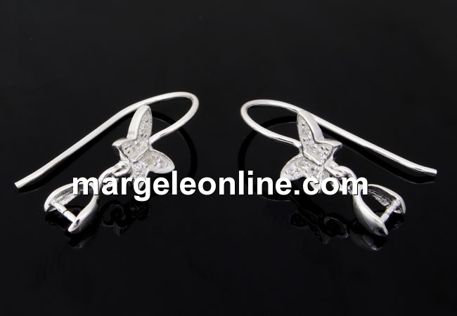 Tortite cercei fluturas si cu cristale, argint 925, 21mm - x1per
