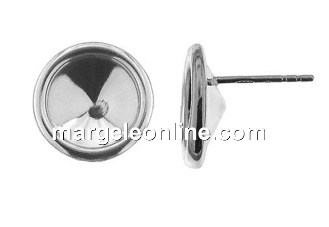 Baza cercei pentru rivoli de 10mm: accesorii bijuterii argint 925, marcat, dimensiune totala: 14x14mm . Pretul este pentru 1 pereche.