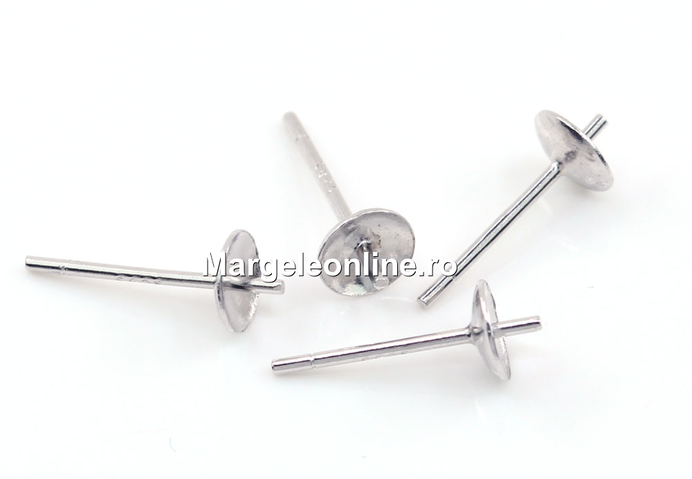 Tortite cercei tija, argint 925 placat cu rodiu, cupa pin 5mm - x1