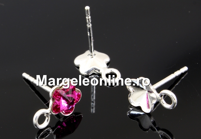 Tortite cercei tija argint 925, rivoli floare Swarovski 6mm - x1per