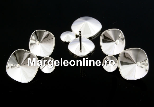 Tortite cercei cu platou pentru fancy square 4470 sau 4461 de 10mm si 12mm si rivoli 1122 de 6mm, accesorii bijuterii argint 925, marcat, dimensiune totala: 25x14.5mm. Pretul este pentru 1 pereche.