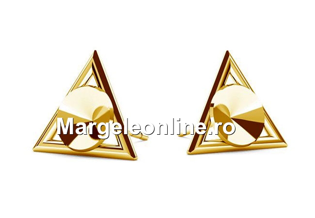 Tortite cercei triunghi, argint 925 pl cu aur, rivoli de 6mm - x1per