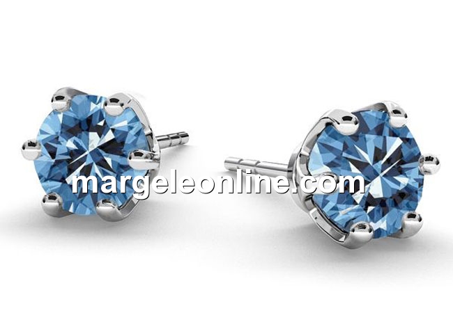 Tortite cercei, zirconia 6mm, argint 925, blue - x1per