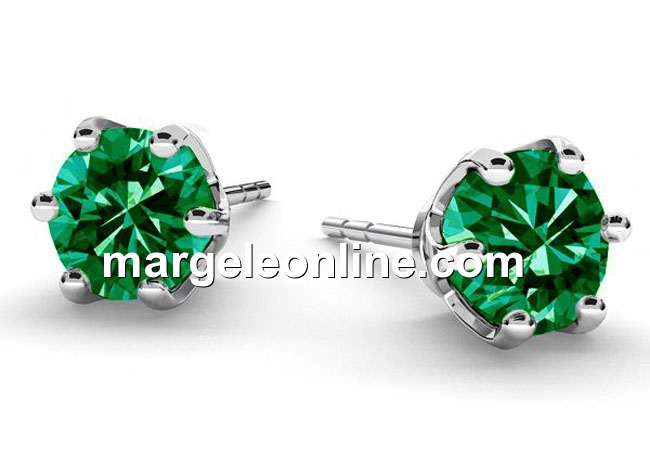 Tortite cercei, zirconia 6mm, argint 925, green - x1per
